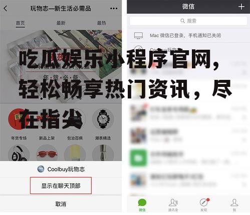 你有没有发现,最近手机上多了一个特别好玩的小程序,它就是“吃瓜娱乐小程序官网”。是不是好奇这个小程序里都有啥?别急,今天我就带你一探究竟,看看这个小程序到底有什么魔力,能让那么多的小伙伴们爱不释手。