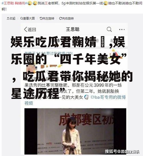 亲爱的读者们,今天咱们来聊聊娱乐圈里的一股清流——鞠婧祎。这位小姐姐可是有着“四千年美女”之称,不仅颜值高,而且才华横溢。今天,就让我这个吃瓜群众带你全方位了解一下这位娱乐圈的“小仙女”吧!