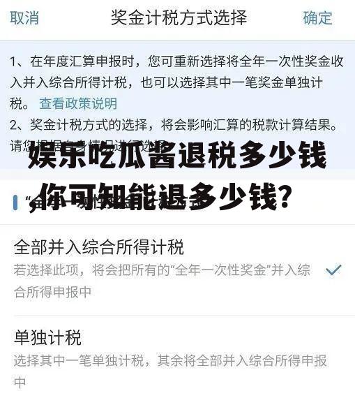 最近娱乐圈可是热闹非凡,各种八卦新闻层出不穷,让人看得是津津有味。这不,最近有个话题引起了大家的广泛关注,那就是“娱乐吃瓜酱退税多少钱”。你是不是也好奇这个话题呢?那就跟着我一起来一探究竟吧!