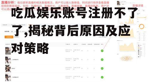 最近有个事儿闹得沸沸扬扬的,那就是吃瓜娱乐账号注册不了了!这可真是让人摸不着头脑,咱们一起来探究探究这背后的原因吧。