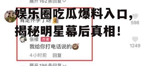 亲爱的读者们,你是否也和我一样,对娱乐圈的八卦新闻充满好奇?那些明星们的私生活、感情纠葛、幕后故事,总是让人津津乐道。今天,就让我带你走进娱乐圈的吃瓜爆料入口,一探究竟!