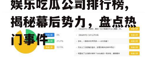 亲爱的读者们,你是不是也和我一样,每天闲来无事,就喜欢翻翻娱乐八卦,看看那些明星们的动态呢?今天,我就要给你带来一份特别的“吃瓜”大餐——娱乐吃瓜公司排行榜!让我们一起揭开这些公司的神秘面纱,看看它们在娱乐圈的江湖地位如何吧!