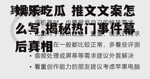 亲爱的读者们,以上就是一些关于如何写出吸引人的推文文案的小技巧。希望你能从中找到灵感,写出让人一看就忍不住点赞、评论、转发的好文案!让我们一起在娱乐的海洋里畅游,享受“吃瓜”的乐趣吧!