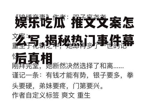 亲爱的读者们,你是不是也和我一样,每天刷着微博、抖音,看着那些娱乐八卦,心里痒痒的,就想赶紧分享到朋友圈或者微博上,让大家一起“吃瓜”呢?那就来跟我一起学习怎么写出让人一看就忍不住点赞、评论、转发的好推文文案吧!