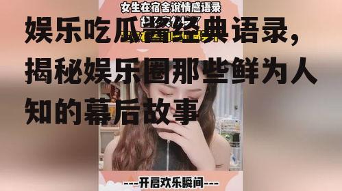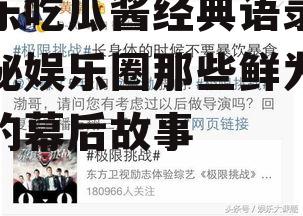 亲爱的读者们,今天我要和你聊聊一个超级有趣的话题——娱乐吃瓜酱的经典语录!你是不是也和我一样,每天追剧、刷综艺,然后一边吃瓜一边笑得前俯后仰呢?那就一起来回味一下那些让人捧腹大笑、回味无穷的“吃瓜酱”语录吧!