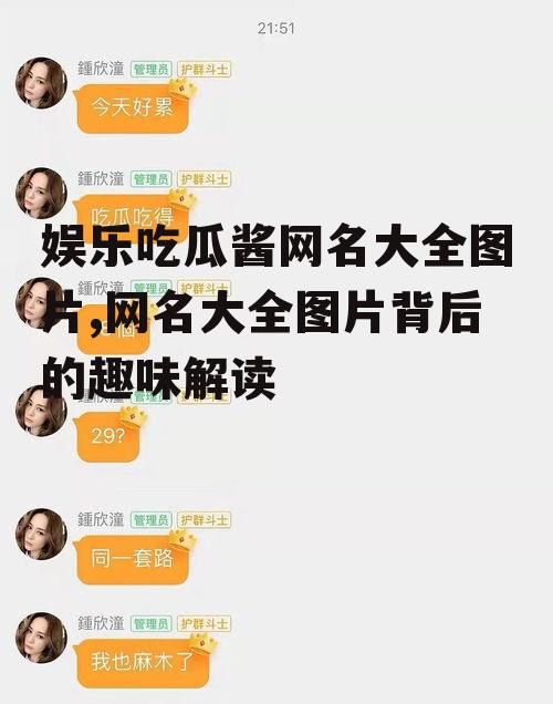 娱乐吃瓜酱网名大全为你提供了丰富的选择,让你在众多名字中找到那个属于你的独特标识。快来挑选一个吧,让你的网络生活更加精彩!