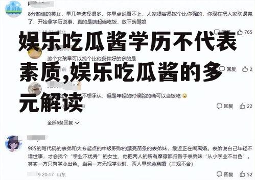 最近娱乐圈可是热闹非凡啊!咱们一起来聊聊那些吃瓜群众们最关心的话题——学历与素质的关系。你知道吗,有时候学历高并不代表一个人的素质就一定高哦!下面就让我带你从多个角度来探讨这个问题吧!