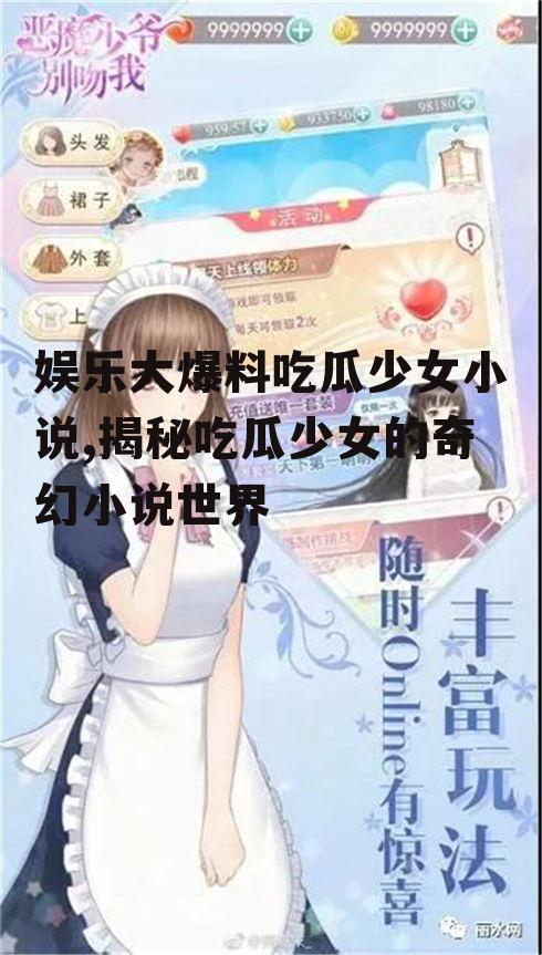 哎呀呀,亲爱的读者们,今天我要给你带来一份超级劲爆的娱乐大爆料,保证让你眼睛一亮,嘴巴一惊!你知道最近网络上最火的“吃瓜少女”吗?她可是小说界的一股清流,不仅故事精彩,而且人物个性鲜明,让人忍不住想要一探究竟。下面就让我带你走进这个充满奇幻色彩的世界,一起揭开“吃瓜少女”背后的秘密吧!
