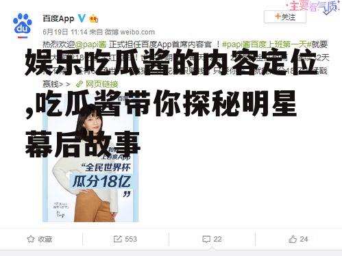 你有没有发现,最近你的朋友圈是不是也被各种娱乐吃瓜酱的内容刷屏了?没错,就是那种让你一边吃瓜一边笑出声的神奇存在。今天,就让我带你深入了解这些娱乐吃瓜酱的内容定位究竟有何魅力,为何能成为社交媒体的新宠儿。