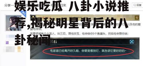 亲爱的读者们,你是不是也和我一样,闲暇之余喜欢八卦看看那些娱乐圈的热点新闻,然后躲在角落里偷偷地吃瓜呢?今天,我就要给你带来一份特别的礼物——八卦小说推荐,让你在享受娱乐的同时,还能沉浸在文字的魅力中。