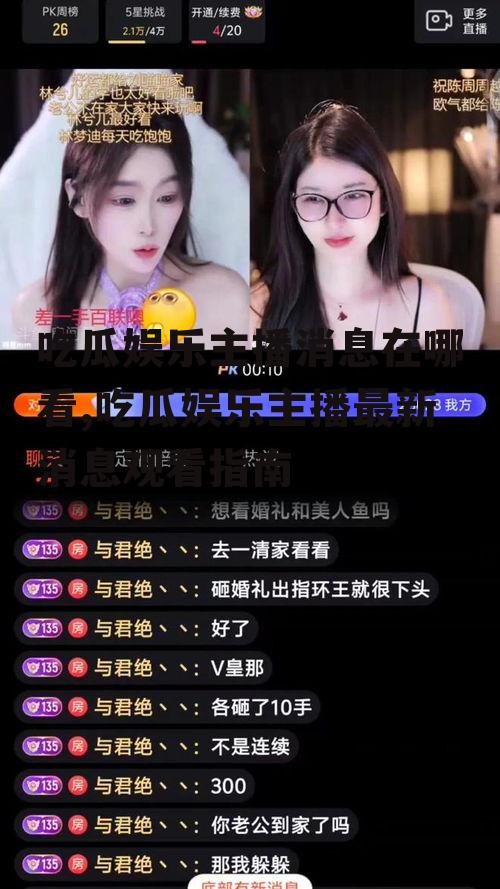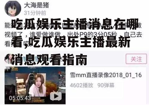 - 腾讯娱乐:腾讯娱乐是国内领先的娱乐资讯网站,提供最新的娱乐新闻、明星动态、影视资讯等。你可以在腾讯娱乐的首页找到“娱乐新闻”版块,那里会有吃瓜娱乐主播的最新消息。