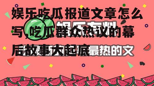 写一篇好的娱乐吃瓜报道,需要紧跟热点,搜集真实素材,结构清晰,语言生动。只要掌握了这些技巧,相信你也能写出吸引人的娱乐吃瓜报道!