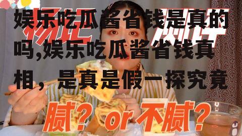 最近在网络上看到一个特别火的省钱攻略,叫做“娱乐吃瓜酱”,听起来是不是有点意思?不过,作为一个精明的消费者,你是不是也在想,这玩意儿真的靠谱吗?今天,就让我带你一探究竟,看看这个“娱乐吃瓜酱”是不是真的能帮你省钱。