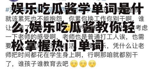 亲爱的读者们,你是否也有过这样的经历:一边追剧一边吃瓜,一边吃瓜一边学单词?没错,今天就要来聊聊这个神奇的组合——“娱乐吃瓜酱学单词”。听起来是不是有点意思?那就让我们一起揭开这个话题的神秘面纱吧!