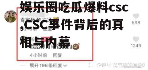 最近娱乐圈可是热闹非凡啊!各种小道消息、爆料层出不穷,让人应接不暇。这不,最近有个叫做CSC的神秘组织,竟然成了吃瓜群众的焦点。今天,就让我带你一探究竟,看看这个CSC到底是个什么来头,又是如何成为娱乐圈吃瓜爆料的佼佼者的。