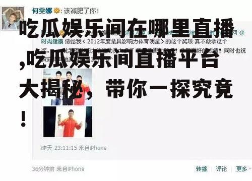 你有没有听说最近超级火爆的吃瓜娱乐间直播?没错,就是那个让你一秒穿越到娱乐圈,随时随地都能看到明星八卦、热门话题的地方!今天,我就要带你一探究竟,揭秘这个神秘又好玩的直播平台——吃瓜娱乐间在哪里直播!