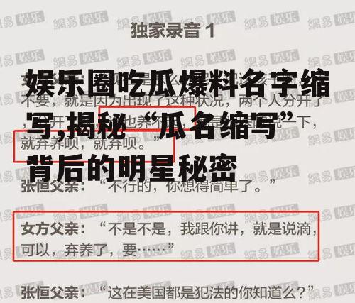 娱乐圈,这个光鲜亮丽的舞台,总是充满了各种八卦和爆料。今天,就让我带你一起走进这个神秘的世界,揭秘那些被隐藏在名字缩写背后的故事。