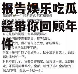 亲爱的读者们,今年的娱乐圈年度报告就分享到这里啦!希望你们在吃瓜的同时,也能从中感受到娱乐圈的喜怒哀乐。别忘了,娱乐圈的故事还在继续,让我们一起期待明年更加精彩的年度报告吧!