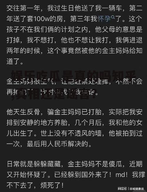 你有没有发现,最近网络上关于“娱乐吃瓜”的话题可是越来越火了?这不,知乎上也是讨论得热火朝天。那么,这“娱乐吃瓜”究竟是不是真的呢?今天,我们就来一探究竟,看看这背后到底隐藏着什么秘密。