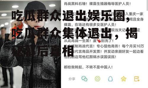 吃瓜群众退出娱乐圈,背后反映的是他们对娱乐圈现状的失望和无奈。在这个信息爆炸的时代,我们需要更加理性地看待娱乐圈,关注那些真正有意义的事情。而对于吃瓜群众来说,退出娱乐圈,回归生活,或许才是他们最明智的选择。