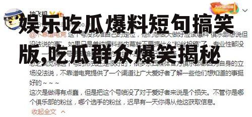 亲爱的读者们,今天我要给你带来一份特别的“娱乐大餐”,让你在忙碌的生活中找到一丝轻松和快乐。你知道嘛,娱乐圈就像一个大瓜田,每天都有新鲜事儿冒出来,让人忍不住想要一探究竟。今天,我就要给你带来一些搞笑版的热门爆料,让你笑到肚子疼!