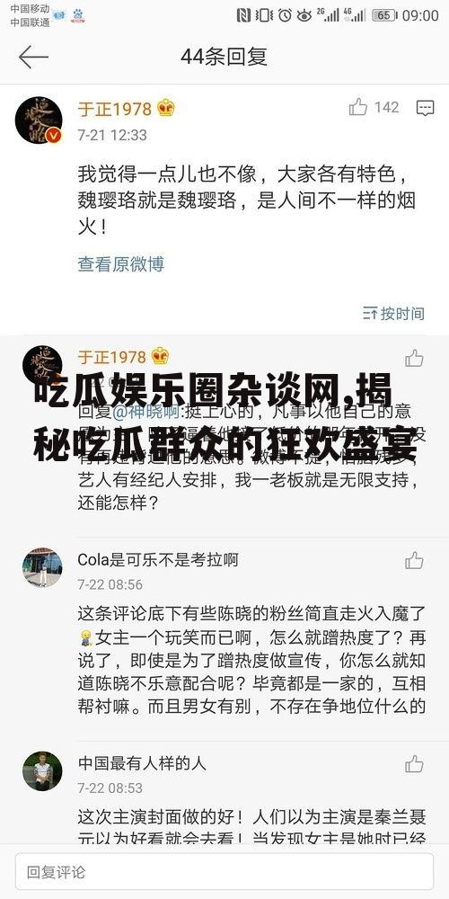 亲爱的读者们,今天咱们来聊聊娱乐圈那些事儿,那些让人捧腹大笑、又让人感慨万千的“吃瓜”瞬间。网络时代,信息传播速度之快,娱乐圈的点滴动态都能瞬间传遍大江南北。咱们就坐下来,边吃瓜边聊一聊那些网上的娱乐圈杂谈吧!