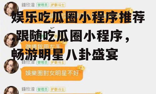你是不是也和我一样,每天刷着手机,对娱乐圈的八卦新闻如数家珍?别急,今天我就要给你安利几个超好用的娱乐吃瓜圈小程序,让你随时随地都能紧跟娱乐圈的潮流,成为朋友圈里的“八卦达人”!